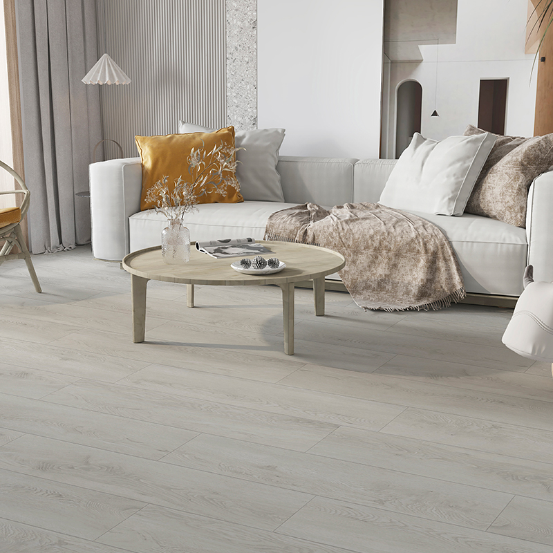 El patrón de madera de roble encalado presenta un grano suave y elegante con delicadas texturas cepilladas y en relieve, realzadas por un acabado natural de brillo 5–10. Ya sea en relieve BP, superficie cepillada o textura EIR (grabada en registro), cada tabla captura el aspecto y la sensación auténticos del roble real con una claridad refrescante.